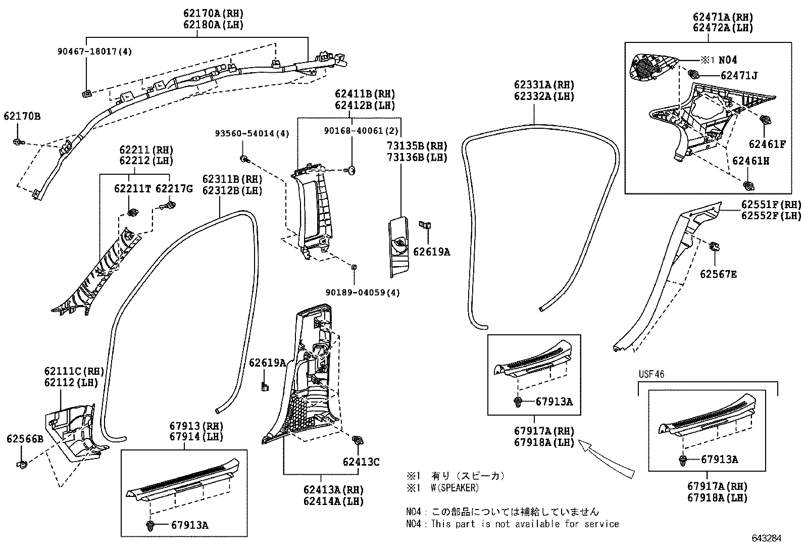 INSIDE TRIM BOARD & DOOR OPENING TRIM MOULDING TOYOTA LEXUS LS600H/600HL