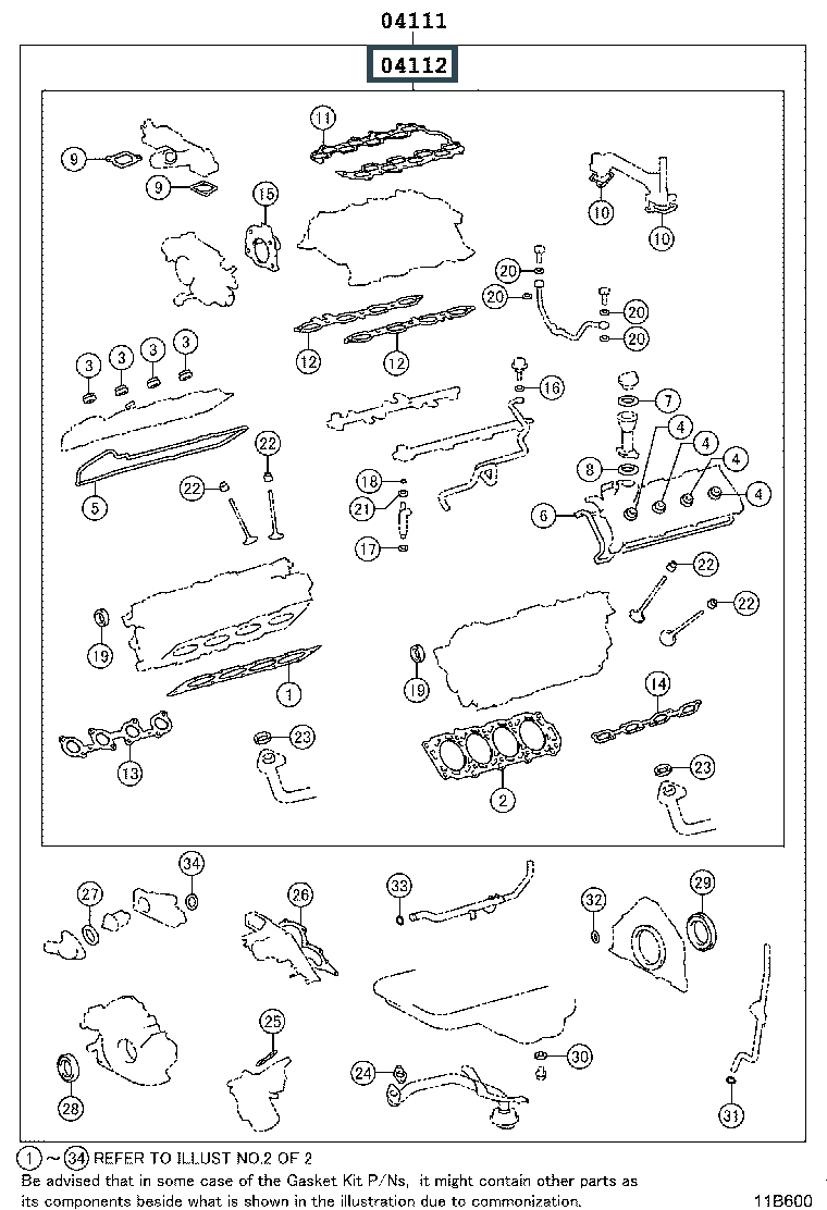 04112-50440, GASKET KIT, ENGINE VALVE GRIND