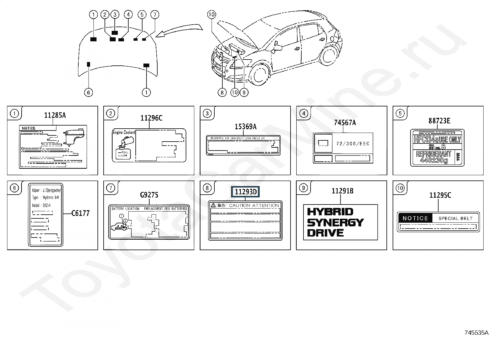 11293-36070, LABEL, ENGINE CAUTION