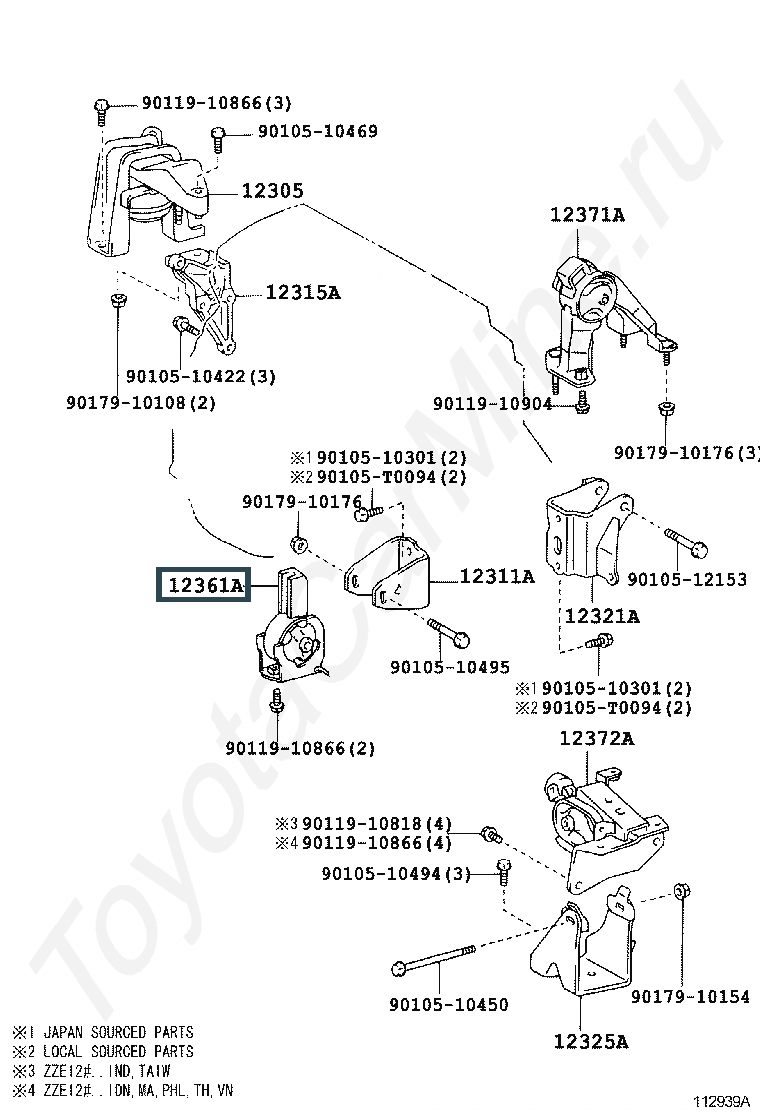 12361-0D050, Опора ДВС, передняя
