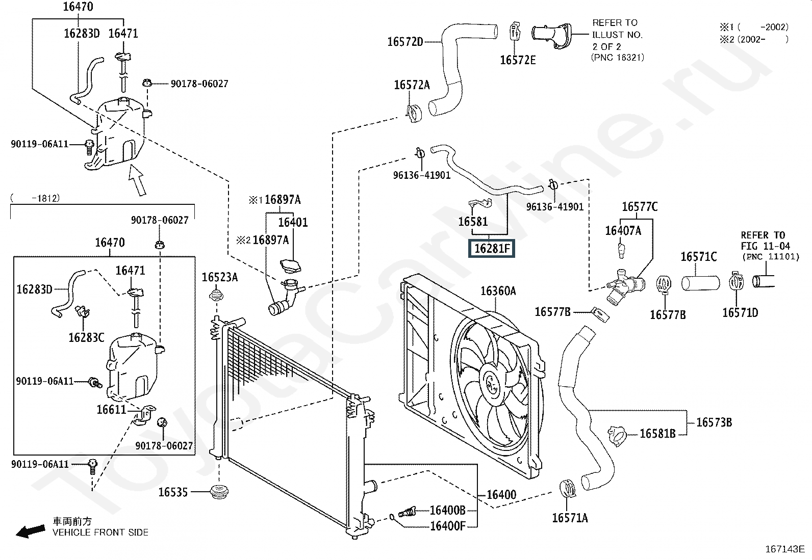 16282-36160, HOSE, WATER BY-PASS, NO.5