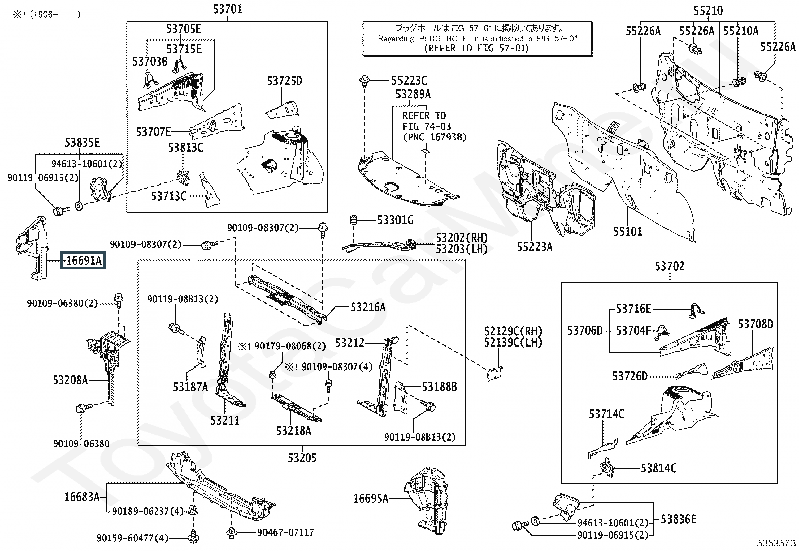 16691-36150, PLATE, RADIATOR SIDE AIR GUIDE, FRONT RH