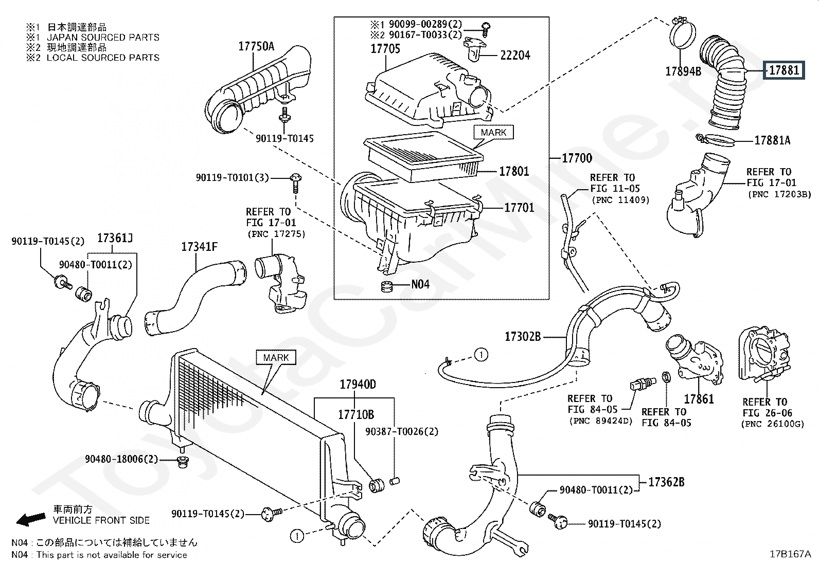 17881-0E020, HOSE, AIR CLEANER, NO.1