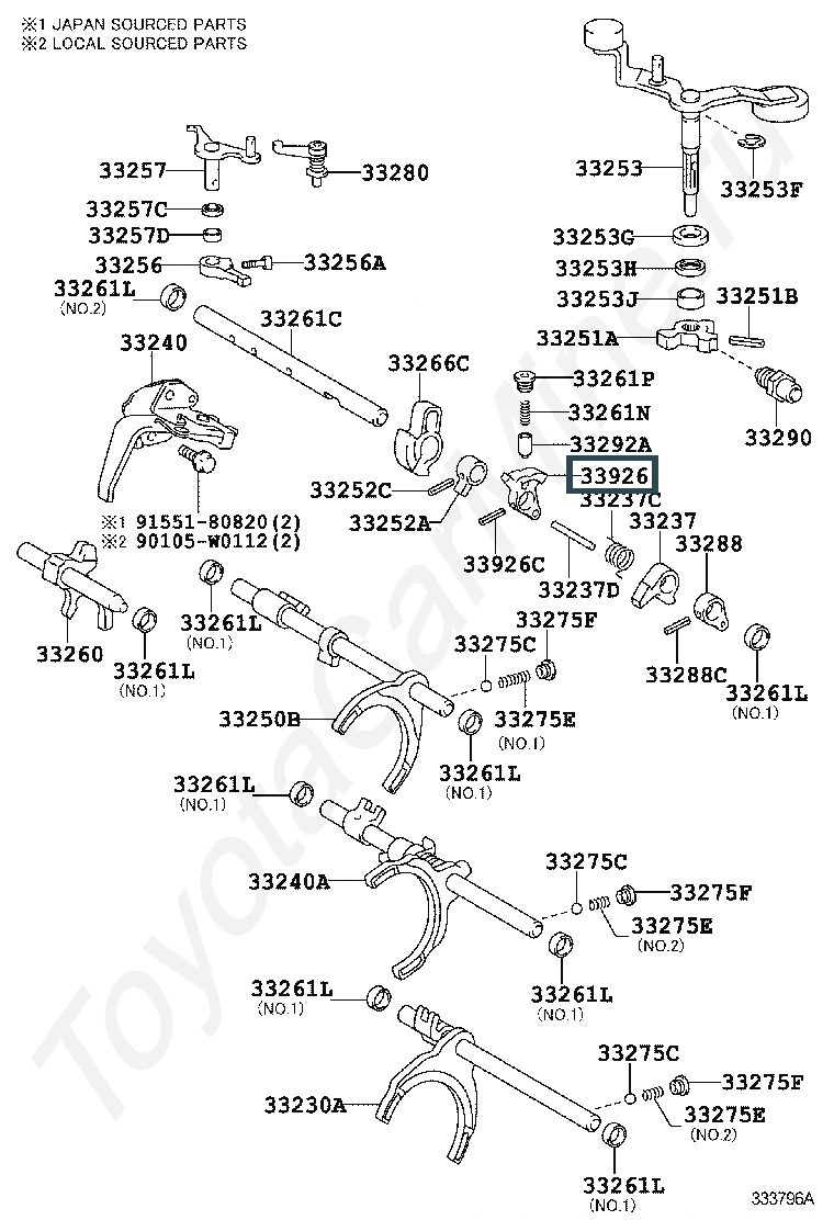 33926-0D011, LEVER, SHIFT INNER, FRONT