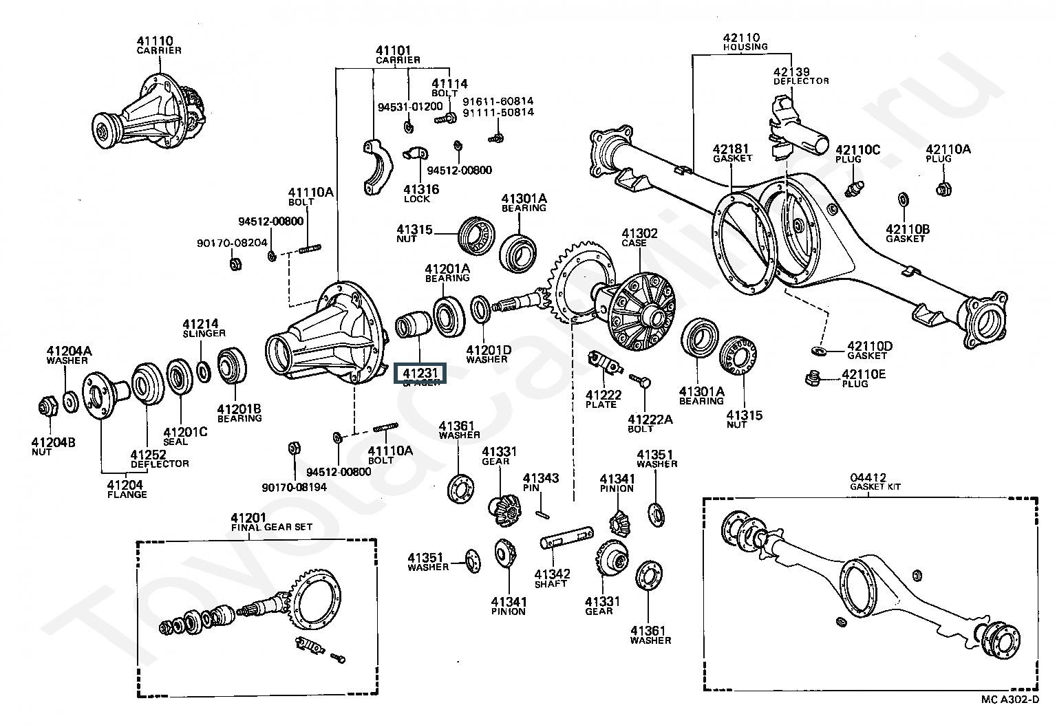 41231-40011, SPACER, FRONT AXLE DIFFERENTIAL DRIVE PINION BEARING