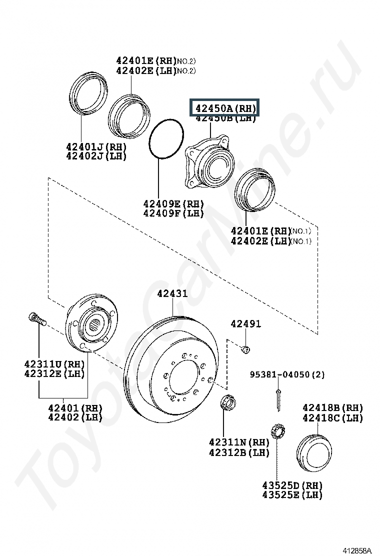 42450-0C020, HUB & BEARING ASSY, REAR AXLE, LH
