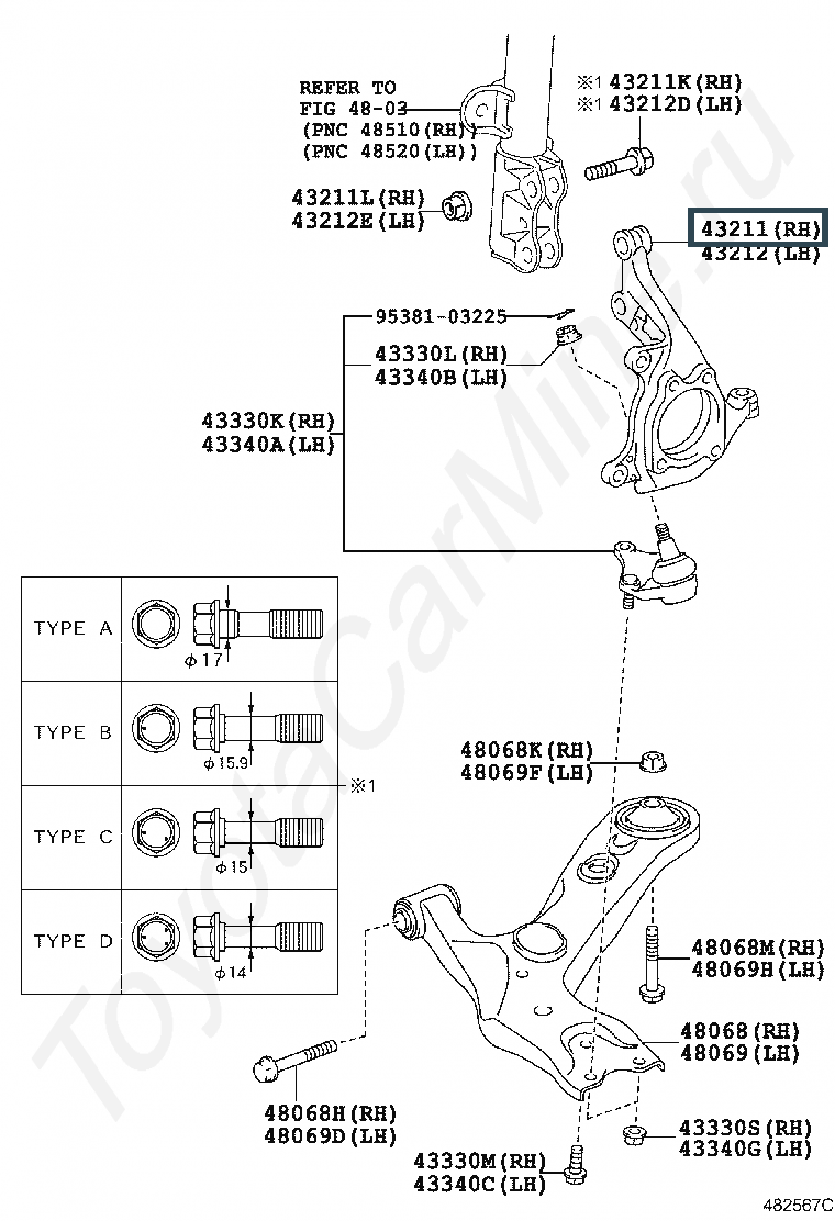 43211-02350, Кулак поворотный передний правый
