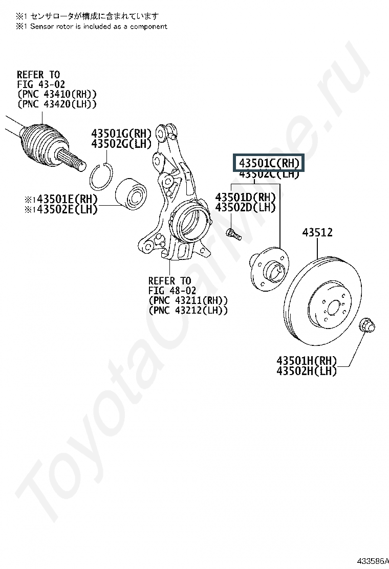 43502-52010, HUB SUB-ASSY, FRONT AXLE, LH