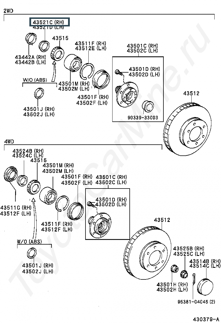 43521-35010, Гайка регулировки переднего правого колеса