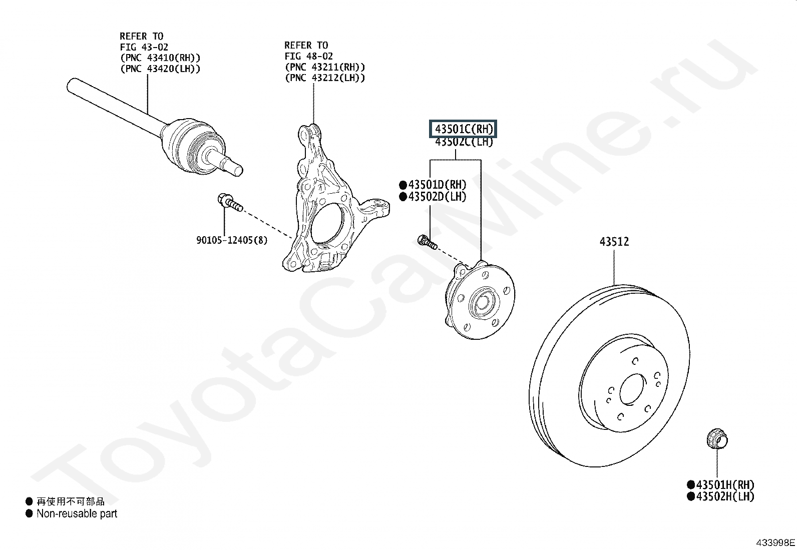 43550-33050, HUB SUB-ASSY, FRONT AXLE, LH