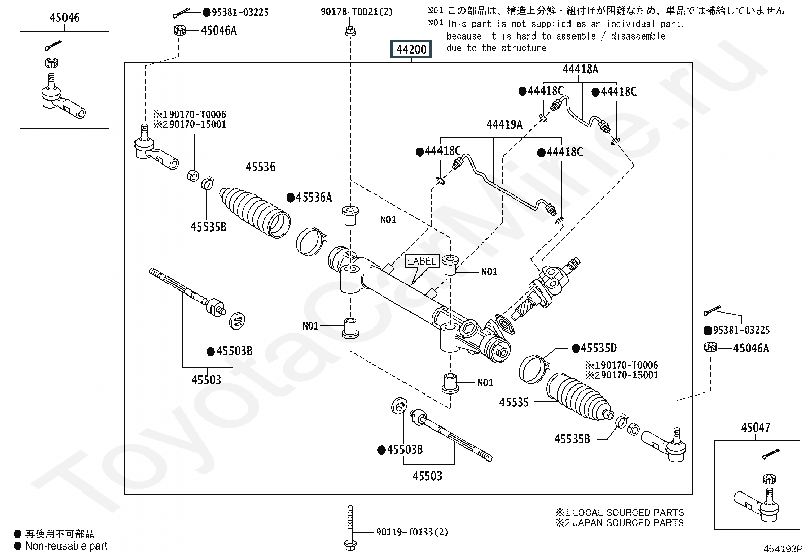 44200-0K890, Рейка рулевая