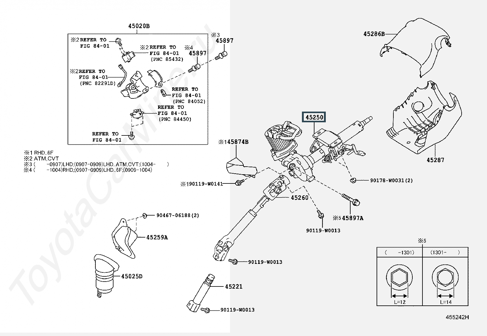 45250-05860, COLUMN ASSY, STEERING