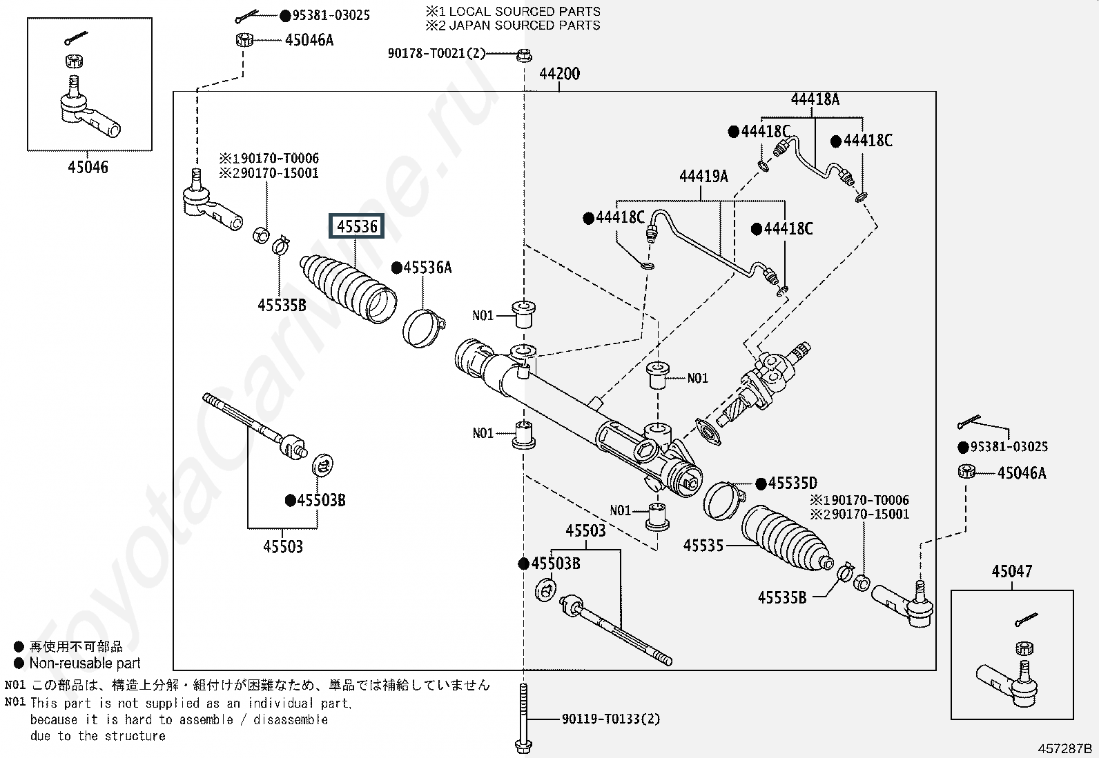 45536-0K010, Пыльник тяги №2