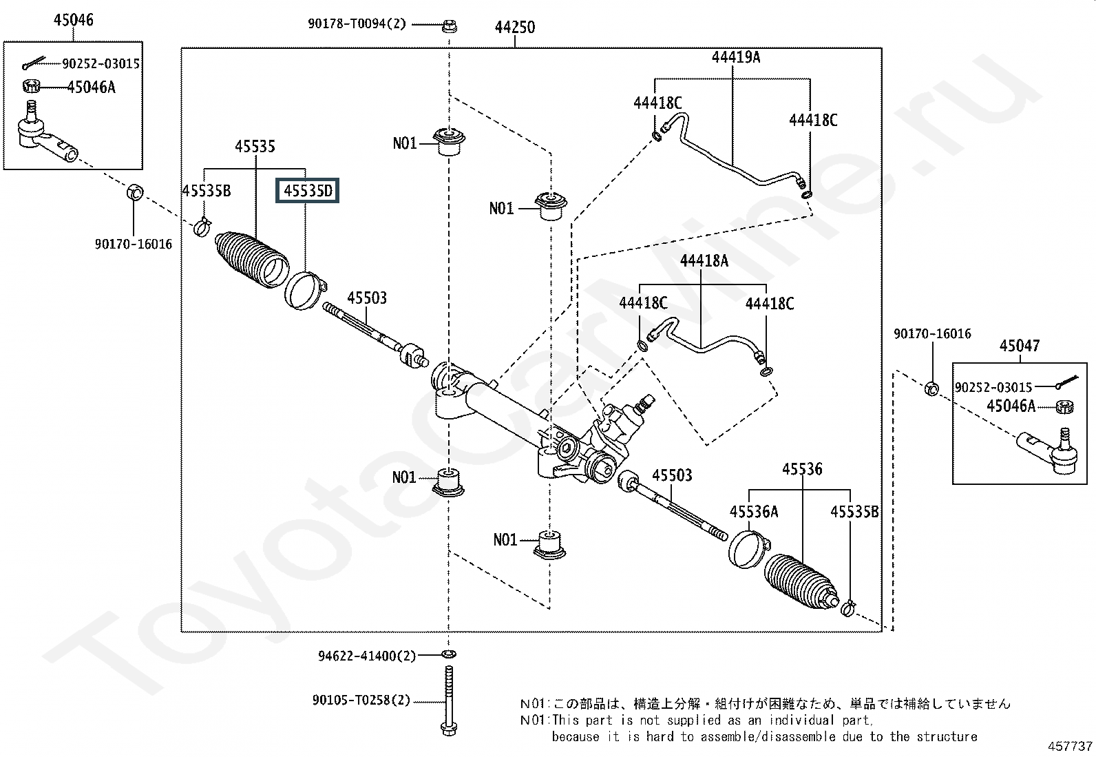 45538-0K030, CLAMP(FOR STEERING RACK BOOT NO.2)
