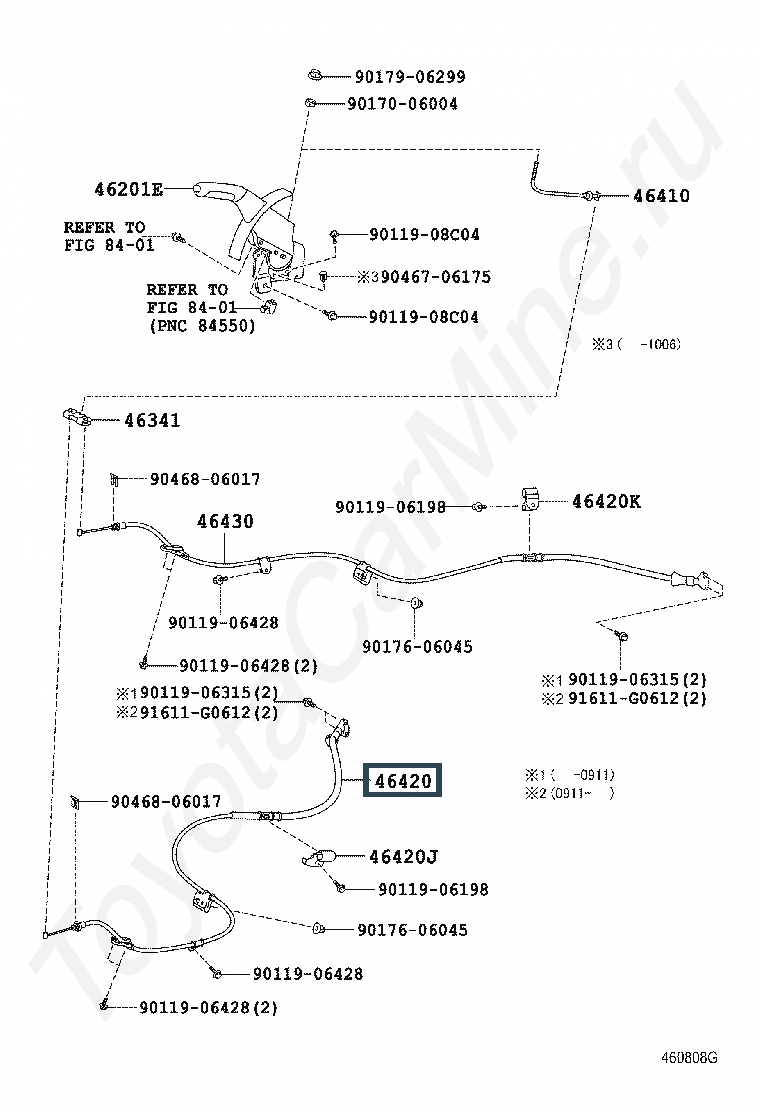 46420-33140, CABLE ASSY, PARKING BRAKE, NO.2