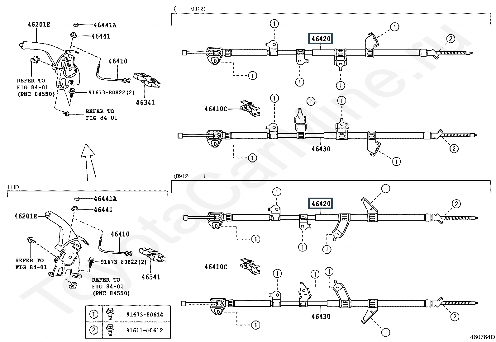 46420-42130, CABLE ASSY, PARKING BRAKE, NO.2
