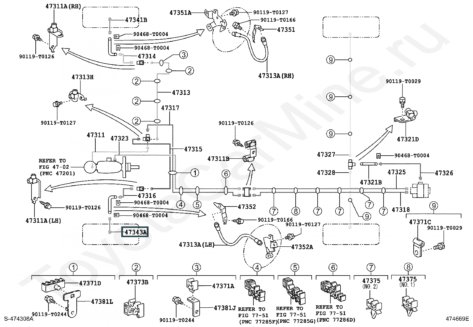 47343-0K010, TUBE, WHEEL CYLINDER, FRONT LH NO.1