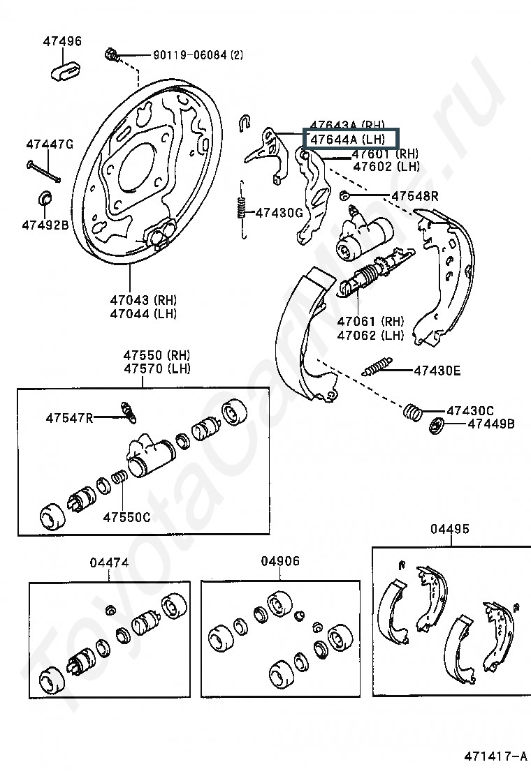 47644-47010, LEVER, REAR BRAKE AUTOMATIC ADJUST, LH