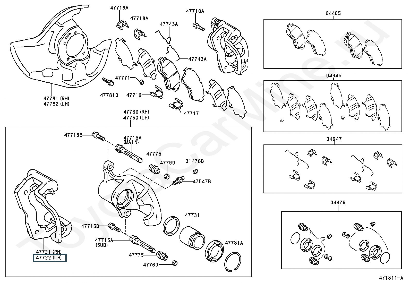 47722-50010, MOUNTING, FRONT DISC BRAKE CYLINDER, LH