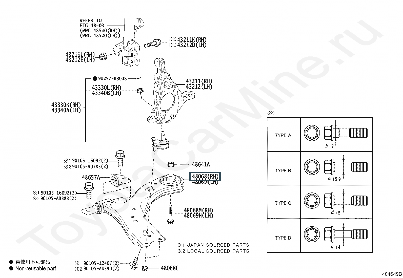 48068-06200, ARM SUB-ASSY, FRONT SUSPENSION, LOWER NO.1 RH