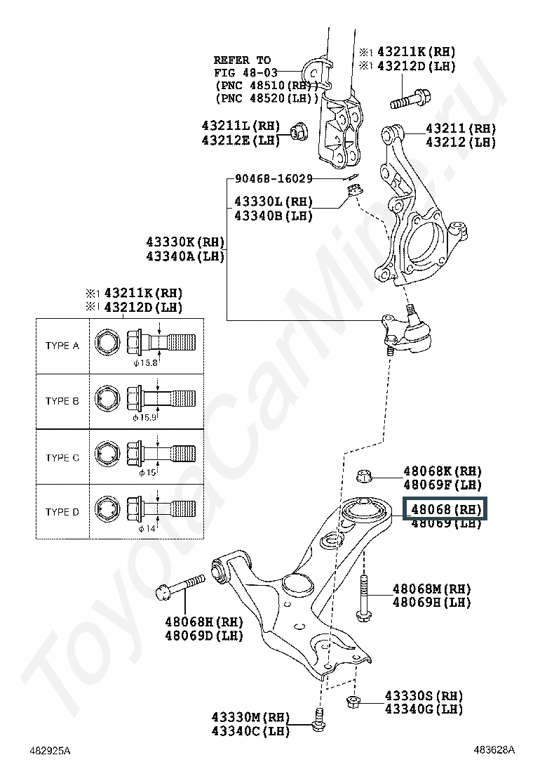 48068-0R010, ARM SUB-ASSY, FRONT SUSPENSION, LOWER NO.1 RH