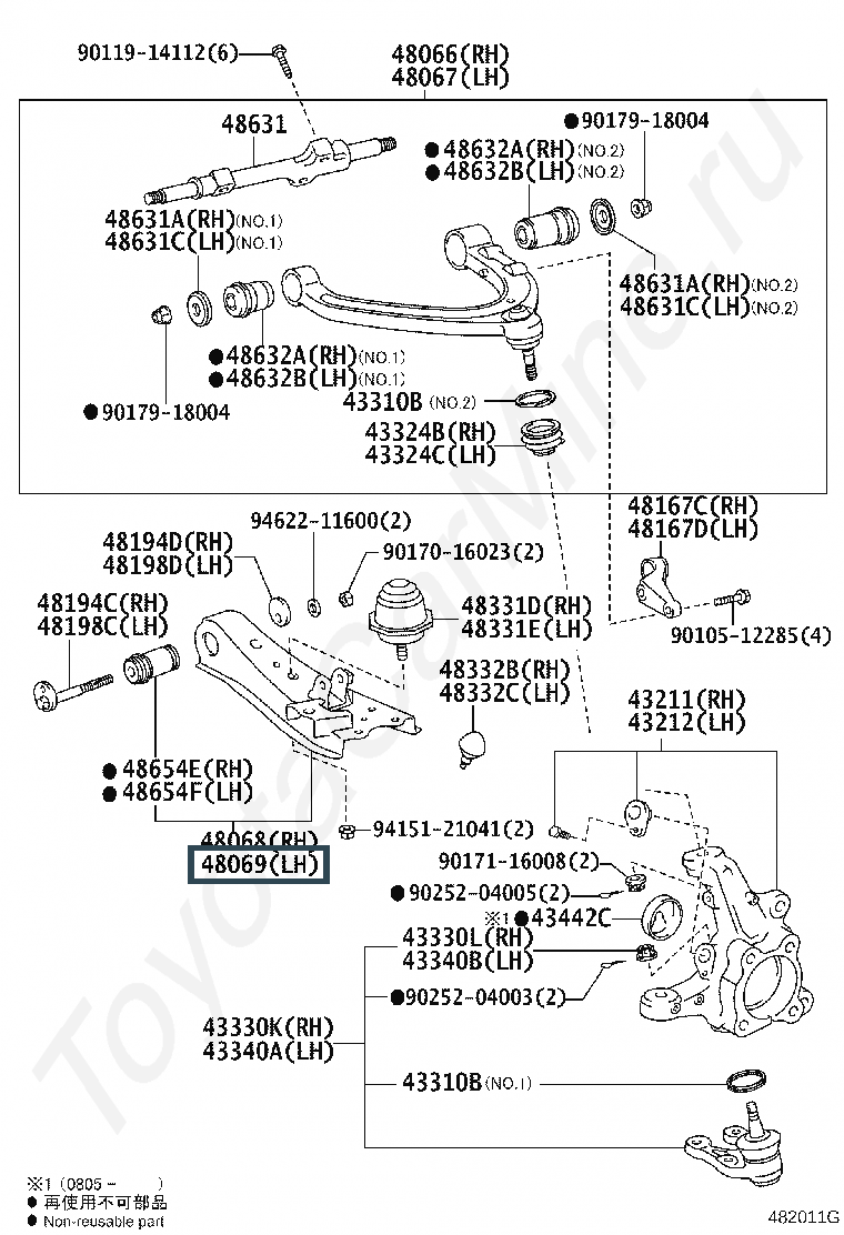 48069-26160, ARM SUB-ASSY, FRONT SUSPENSION, LOWER NO.1 LH