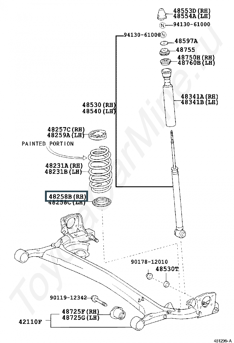 48258-0D010, INSULATOR, REAR COIL SPRING, LOWER LH