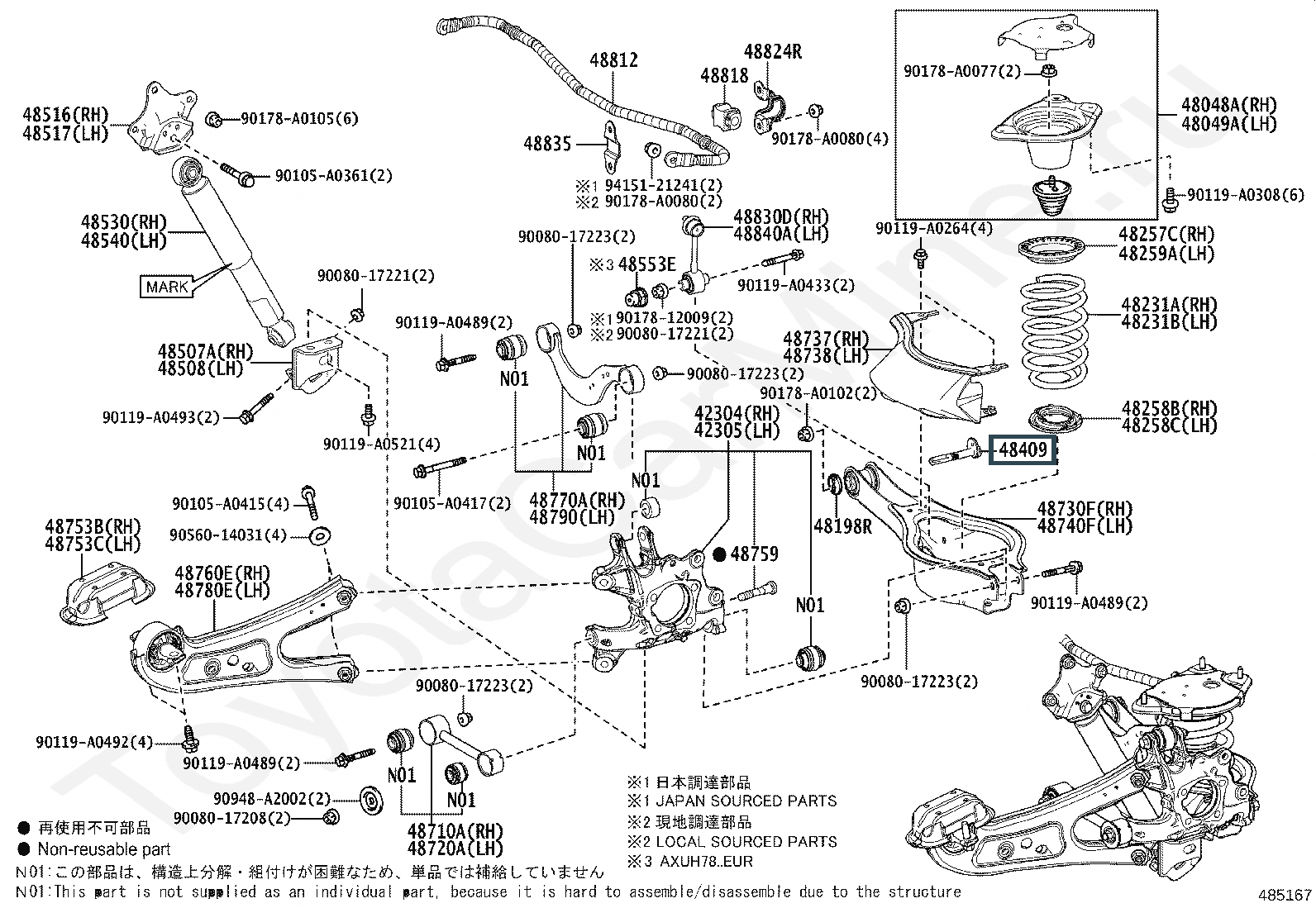 48409-0E040, CAM SUB-ASSY, REAR SUSPENSION TOE ADJUST