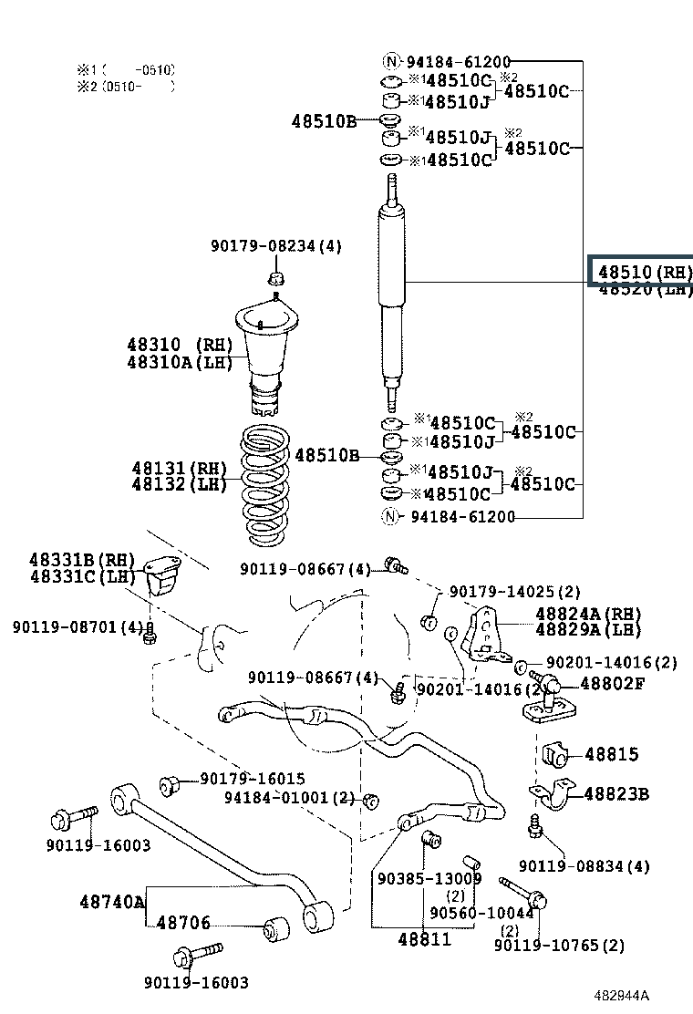 48511-69645, ABSORBER ASSY, SHOCK, FRONT LH