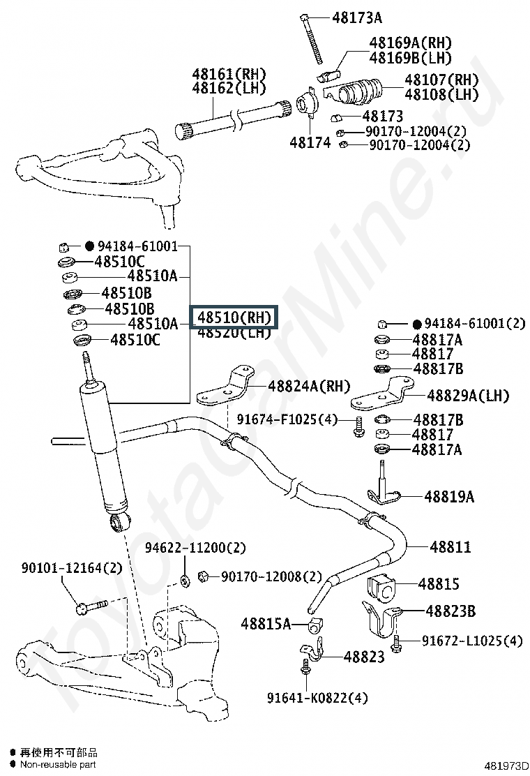 48511-80168, ABSORBER ASSY, SHOCK, FRONT LH