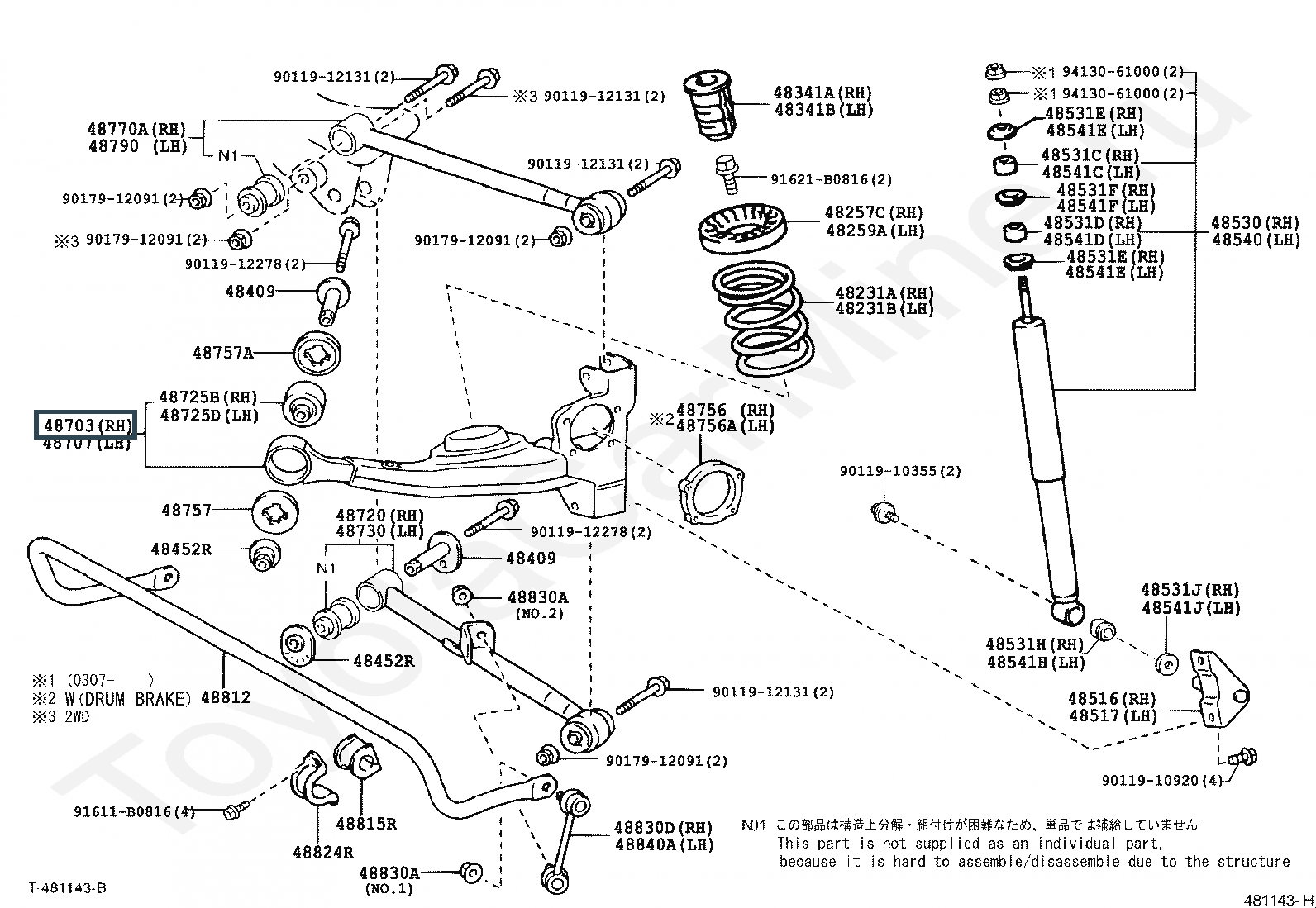48710-42010, ARM SUB-ASSY, REAR SUSPENSION, RH