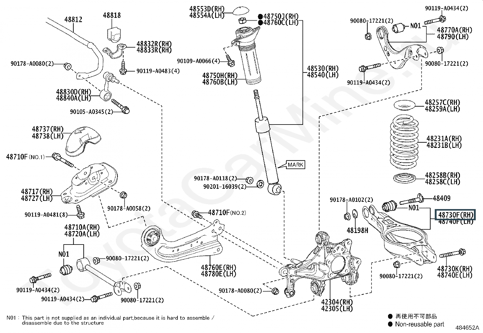48730-06120, ARM ASSY, REAR SUSPENSION, NO.2 LH