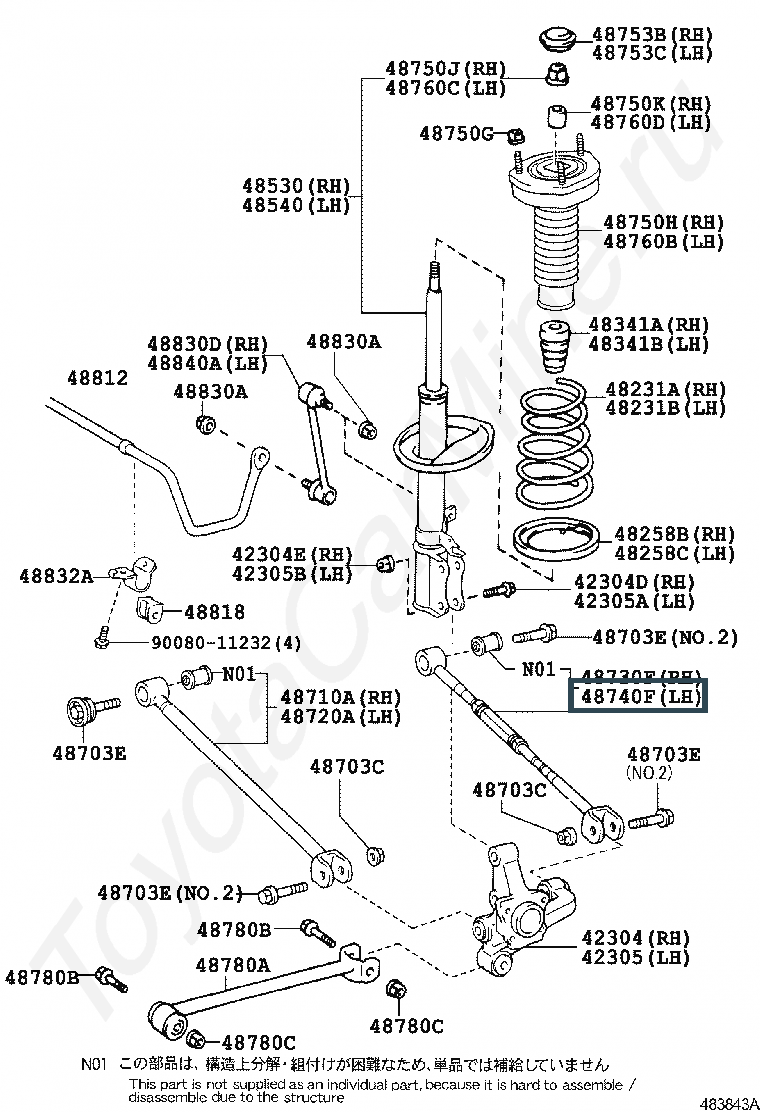 48740-0E050, ARM ASSY, REAR SUSPENSION, NO.2 LH