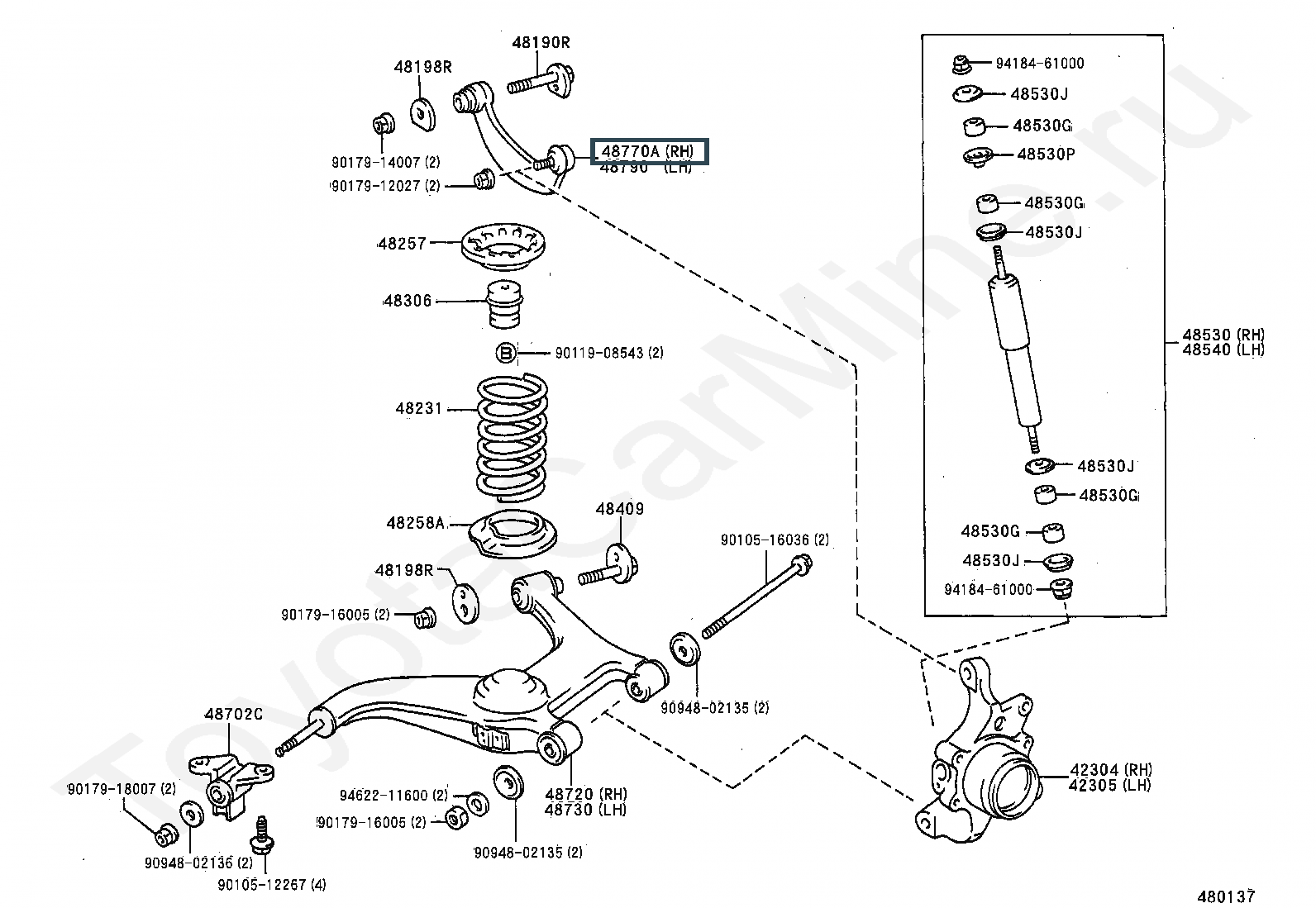 48770-28010, ARM ASSY, UPPER CONTROL, REAR RH