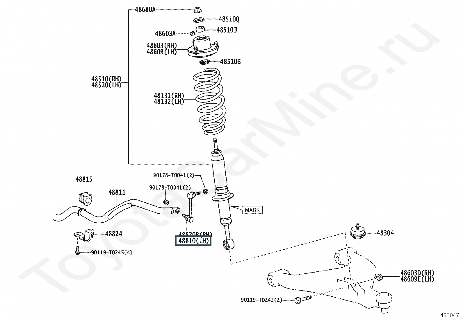 48810-0K010, Стойкат стабилизатора левая