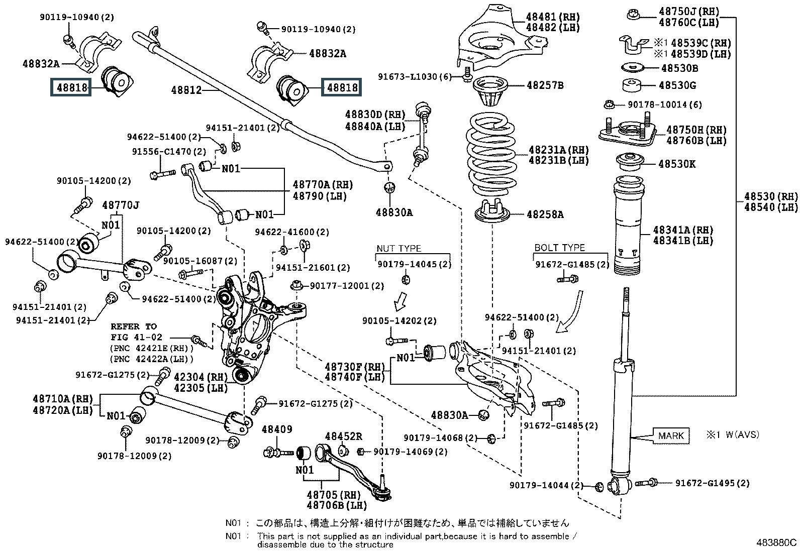 48818-53080, ВТУЛКА ЗАДНЕГО СТАБИЛИЗАТОРА/BUSH, STABILIZER, RR