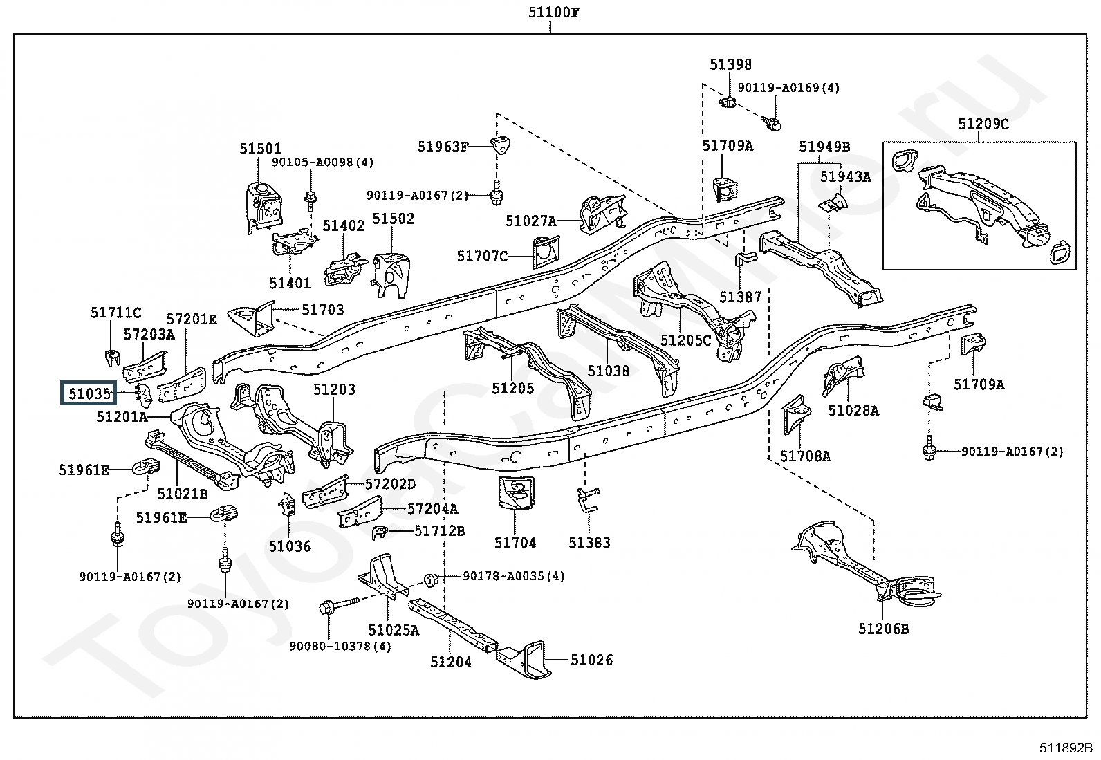 51035-0C040, PLATE SUB-ASSY, FRAME SIDE RAIL, RH