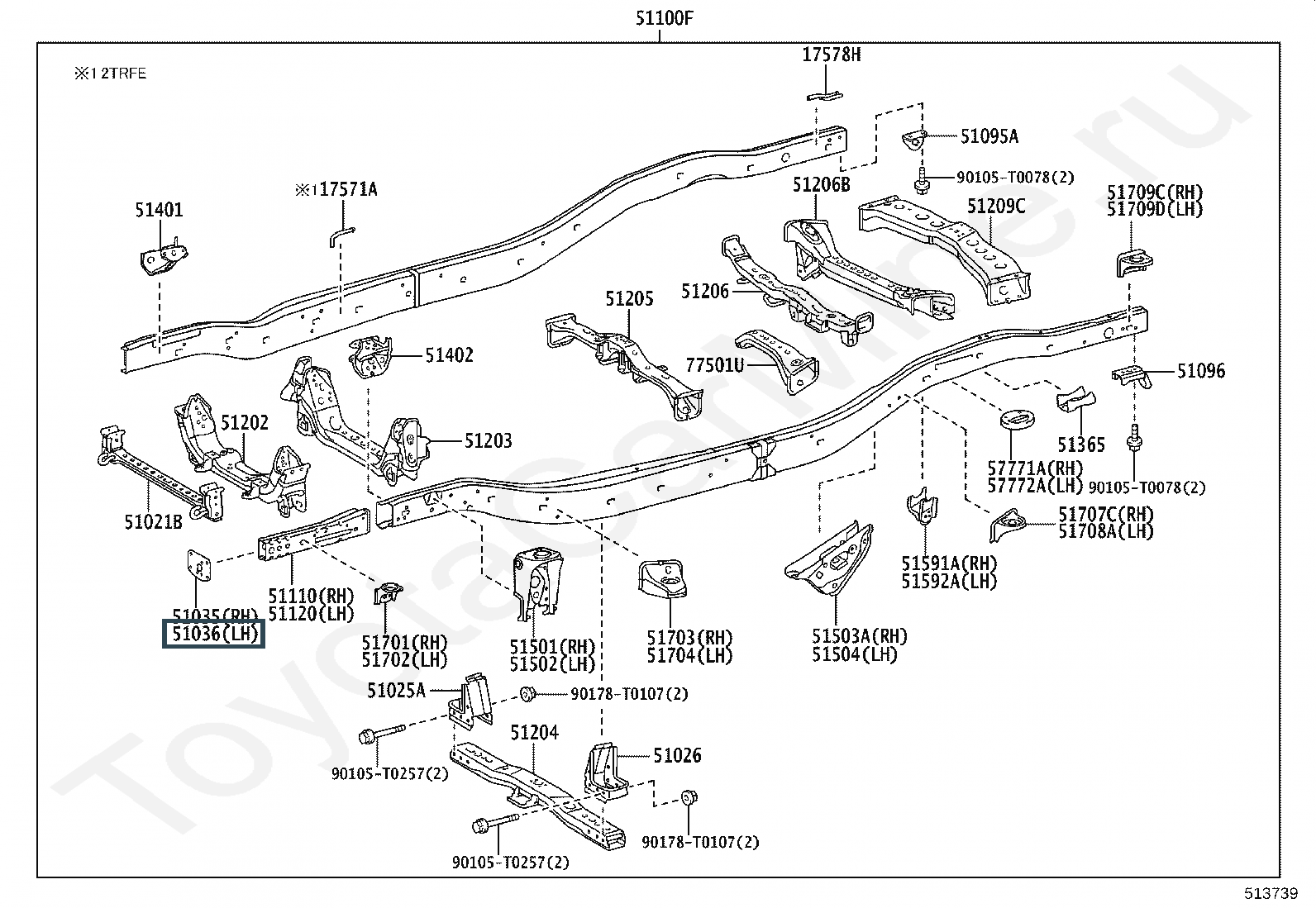 51036-KK010, PLATE SUB-ASSY, FRAME SIDE RAIL, LH