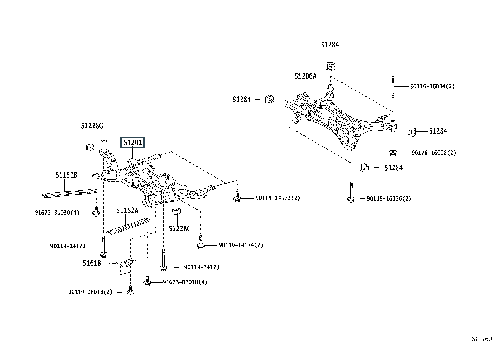 51201-76050, CROSSMEMBER SUB-ASSY, FRONT SUSPENSION
