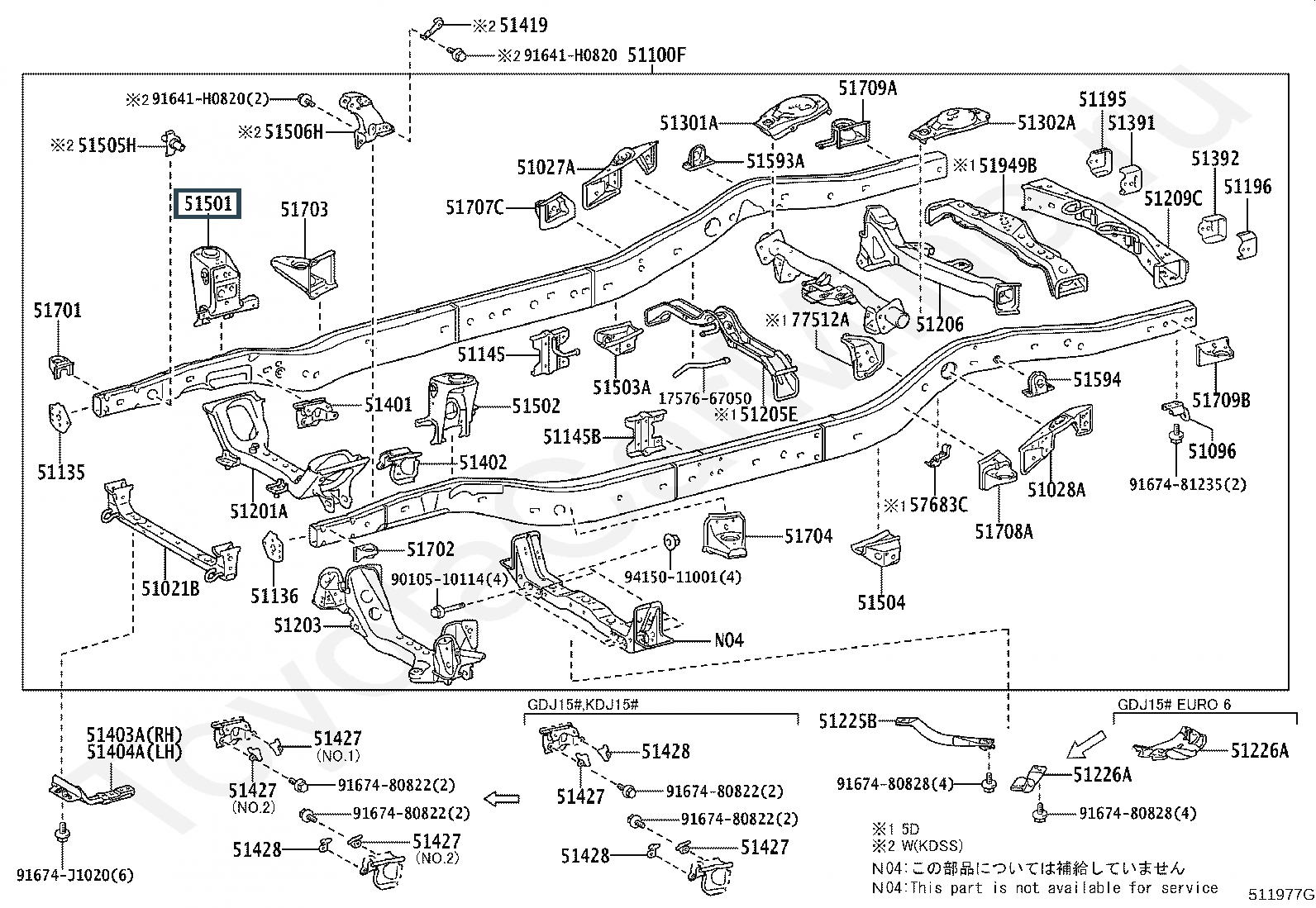 51501-60050, SUPPORT SUB-ASSY, SUSPENSION ARM, RH