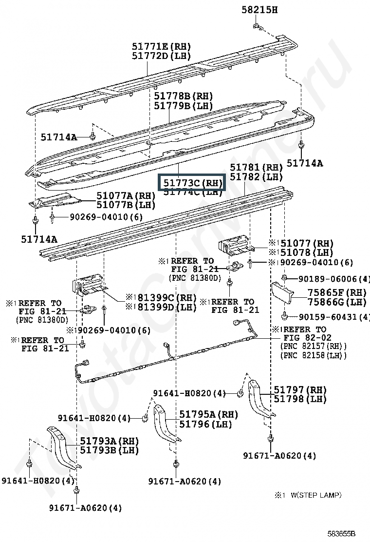 51773-60180, Накладка подножки окраш наружняя прав. lc150