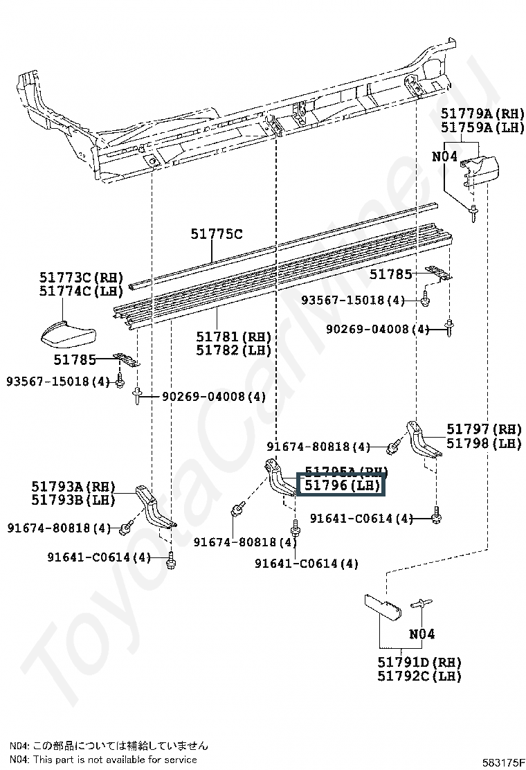 51796-60030, BRACKET, SIDE STEP, NO.2 LH