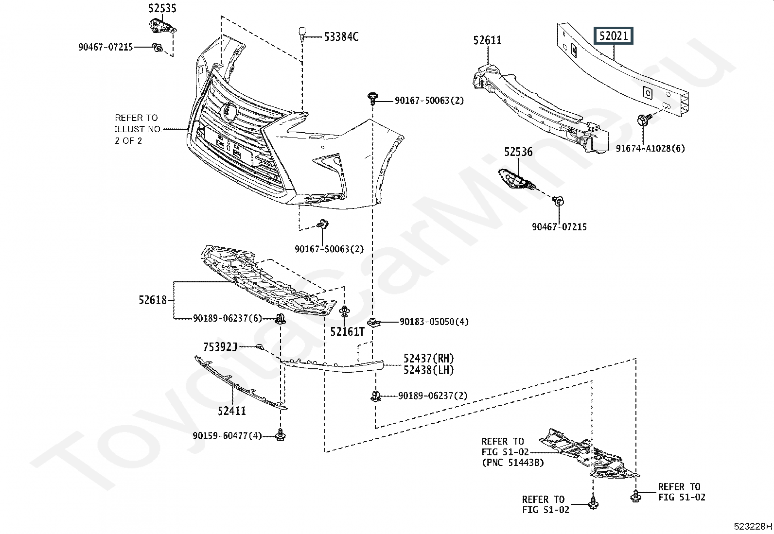 52021-48051, Усилитель бампера передний