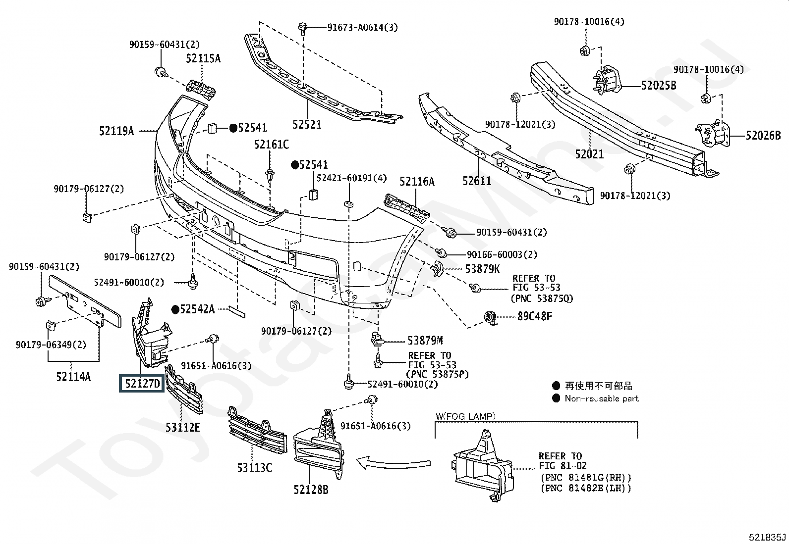 52030-60080, Накладка правой птф