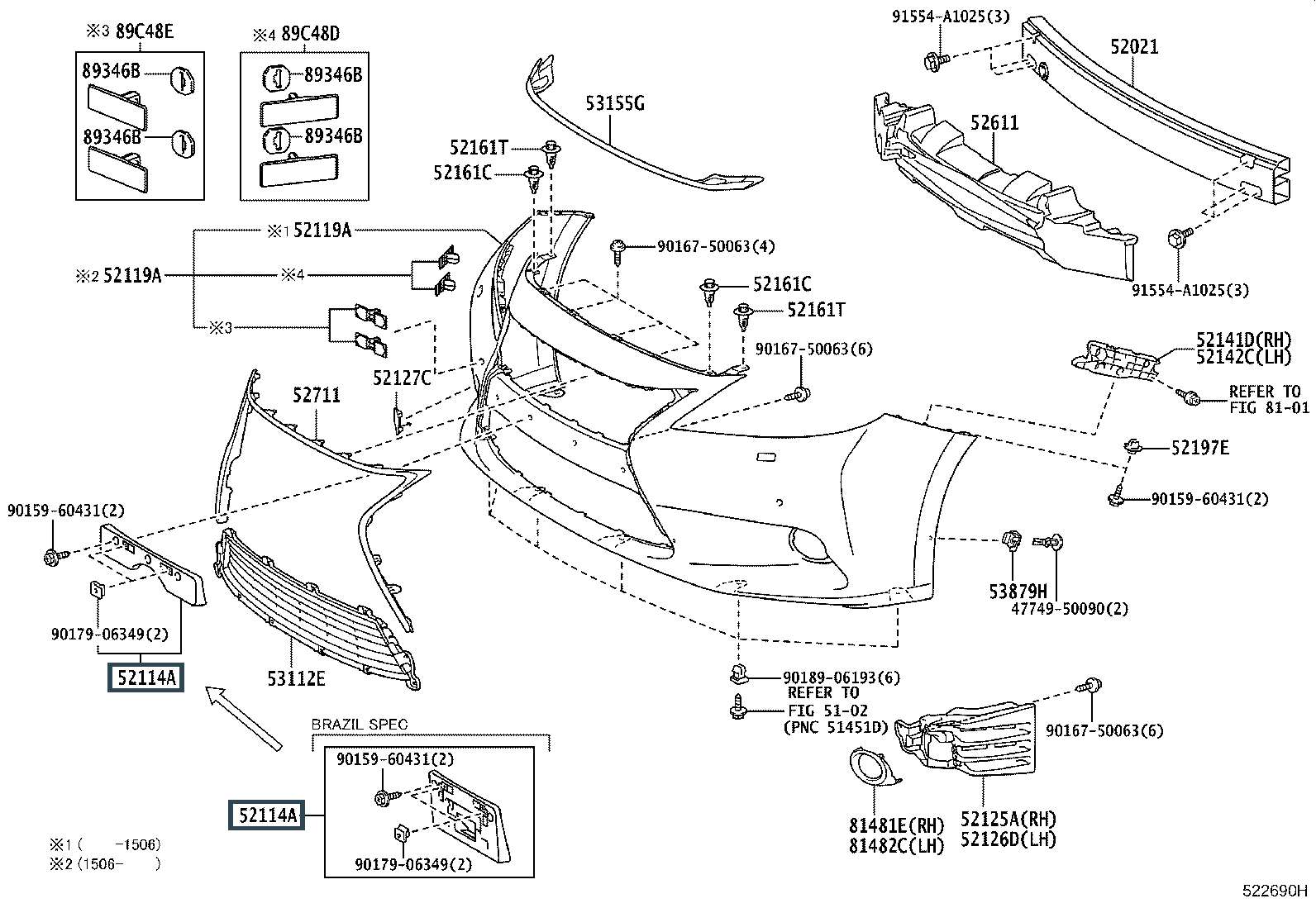 52114-33340, Площадка переднего номерного знака