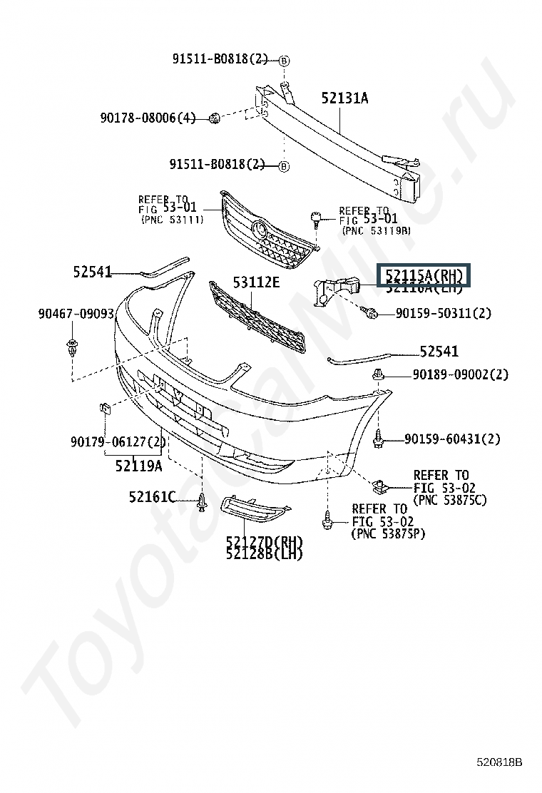 52115-02050, SUPPORT, FRONT BUMPER SIDE, RH