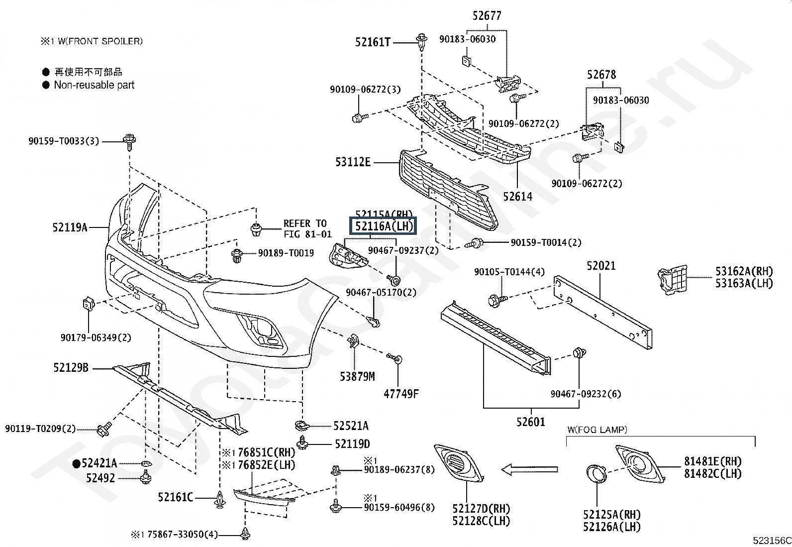 52116-0K180, Направляющая переднего бампера левая