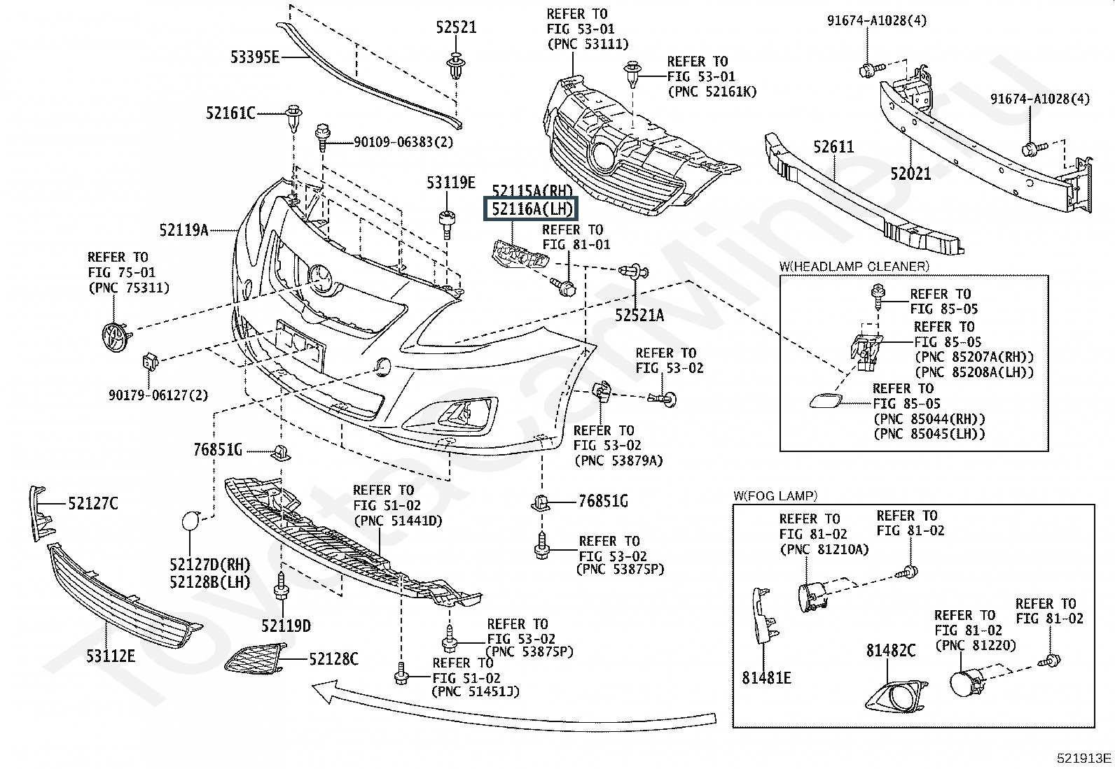 52116-12390, SUPPORT, FRONT BUMPER SIDE, LH