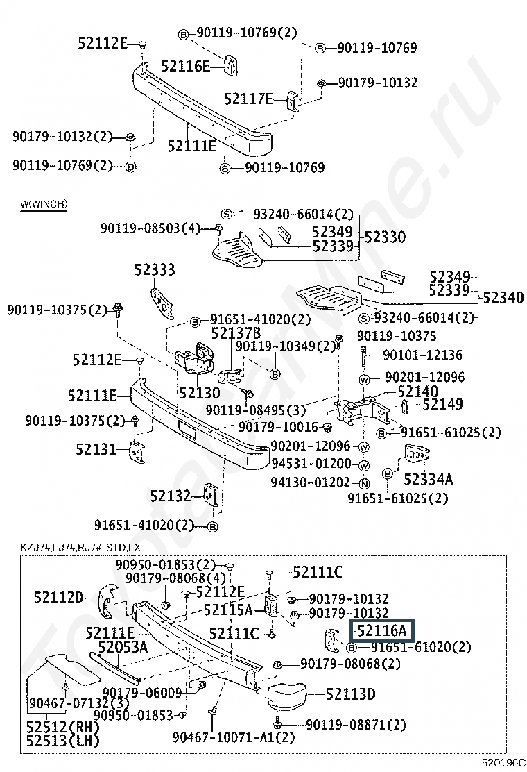 52116-60050, SUPPORT, FRONT BUMPER SIDE, LH