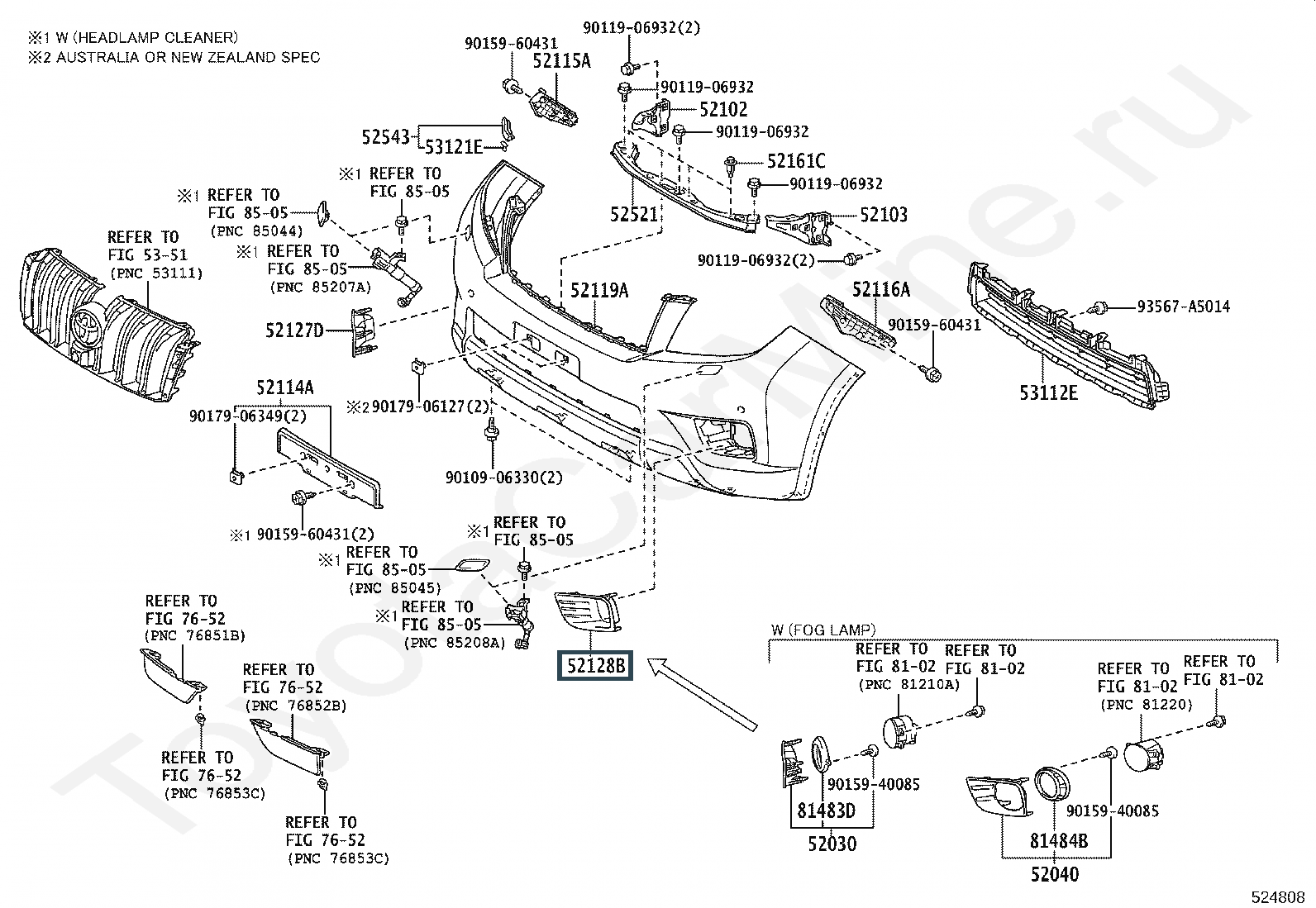 52128-60090, COVER, FRONT BUMPER HOLE, LH
